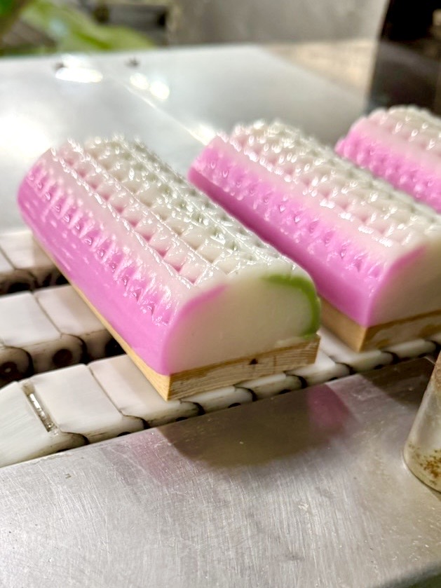 赤、白、緑3色の彩り綺麗なかのこ蒲鉾。お正月の食卓を飾ってくれます!